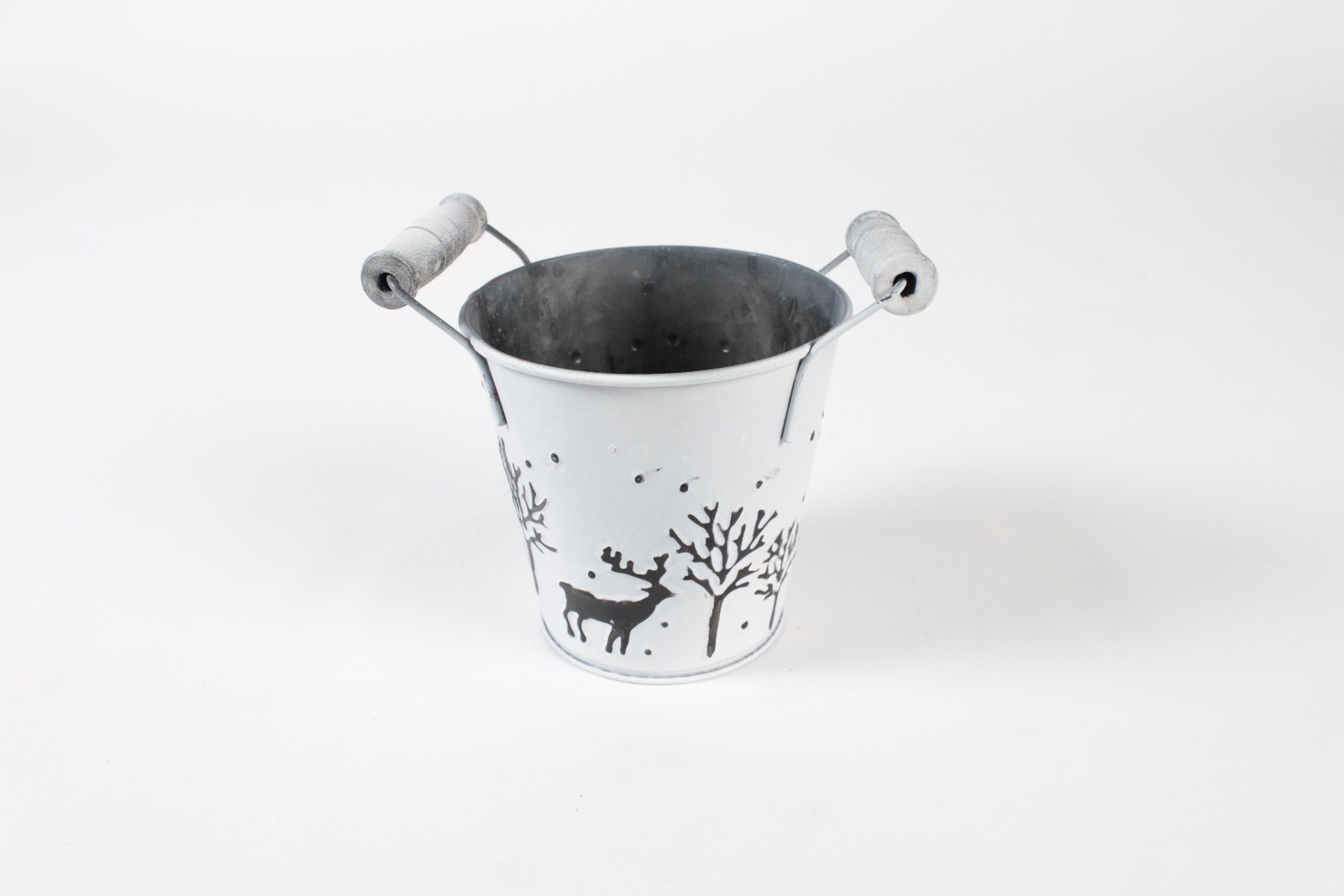 Cache-pot décor de Noël en zinc blanc avec anses diamètre 13cm hauteur 11.5cm