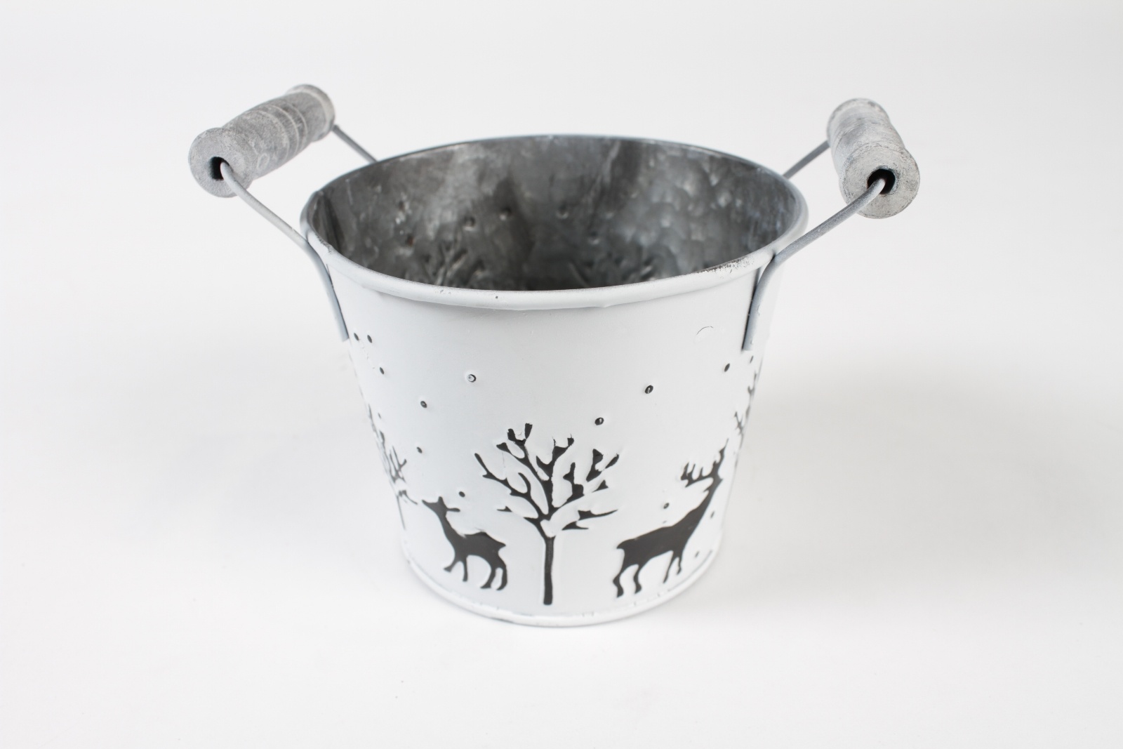 Cache-pot décor de Noël en zinc blanc avec anses diamètre 17cm hauteur 13.5cm