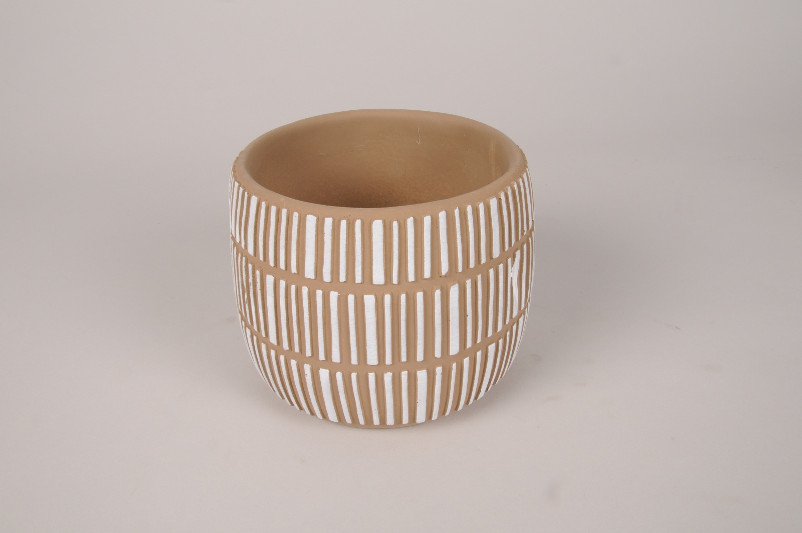 Cache-pot en béton strié blanc et beige diamètre 12cm hauteur 10cm