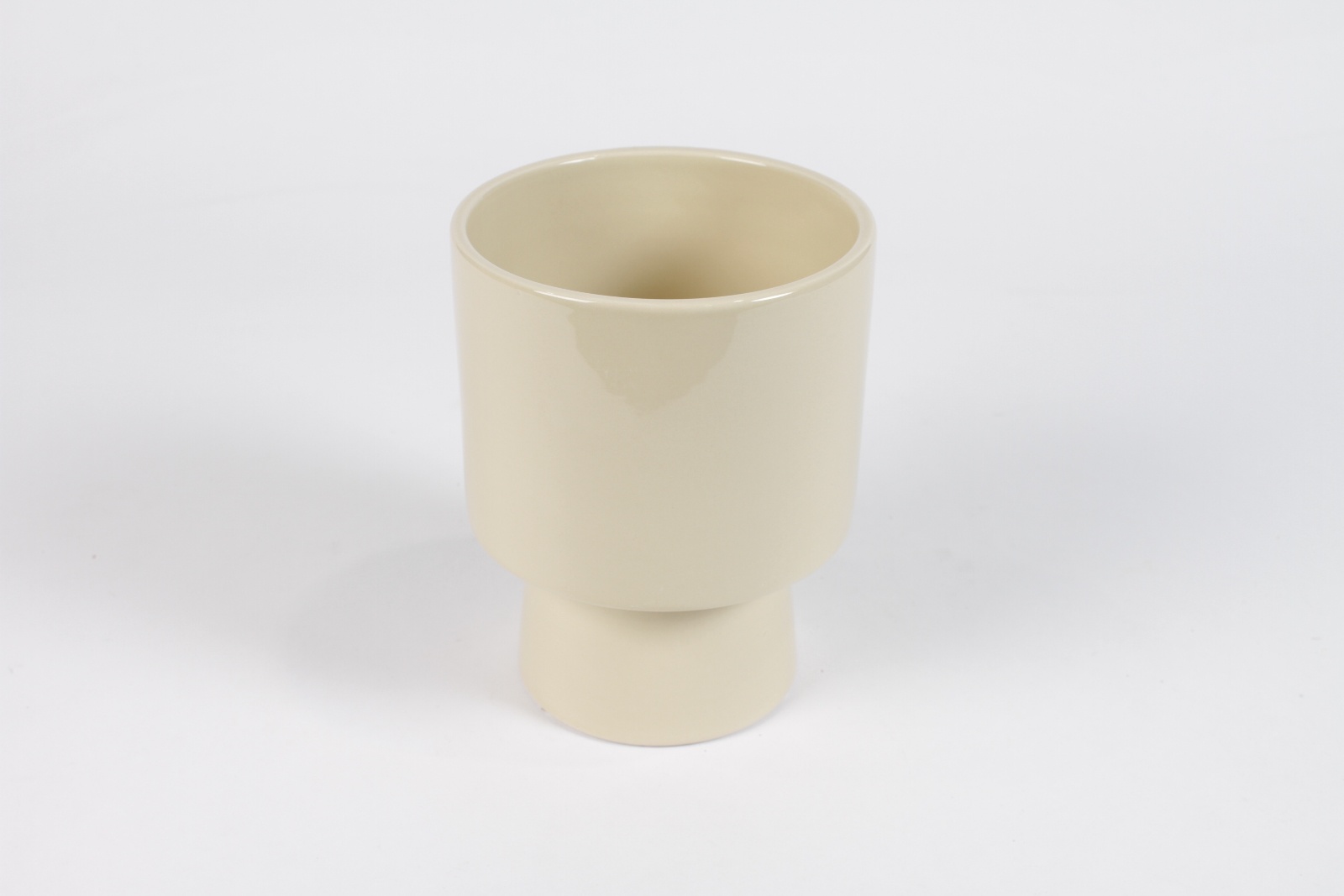 Cache-pot en céramique beige brillant diamètre 13cm hauteur 17cm