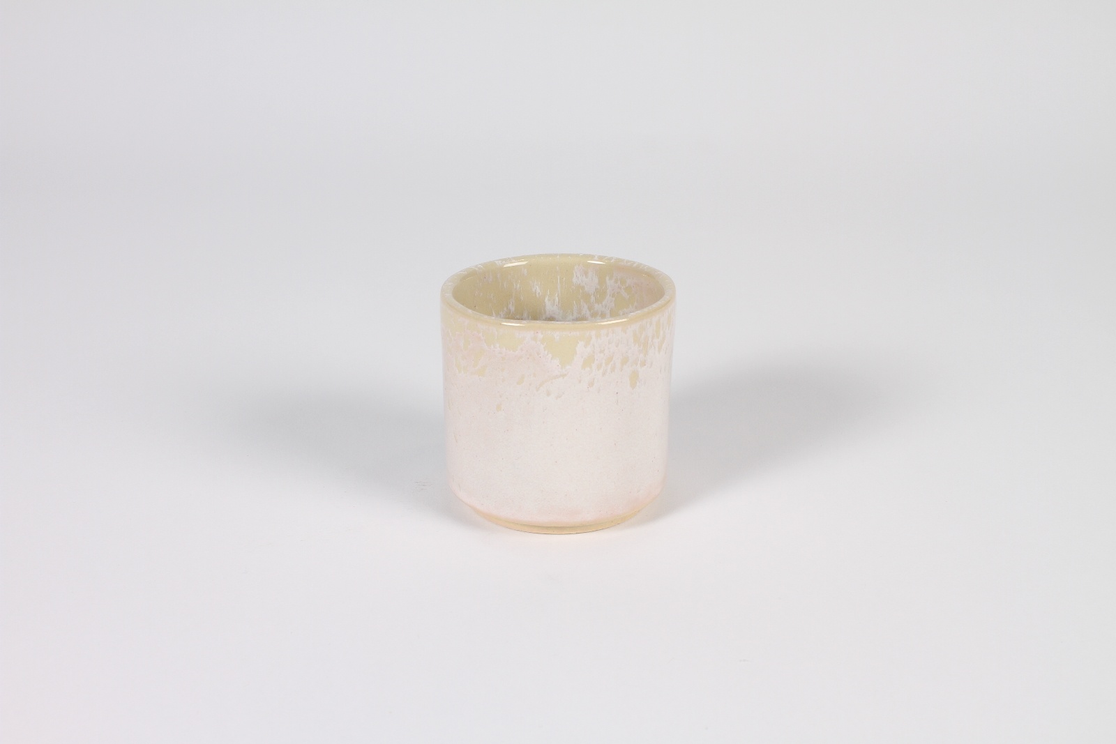 Cache-pot cylindrique en céramique émaillée beige rosé diamètre 7cm hauteur 7cm