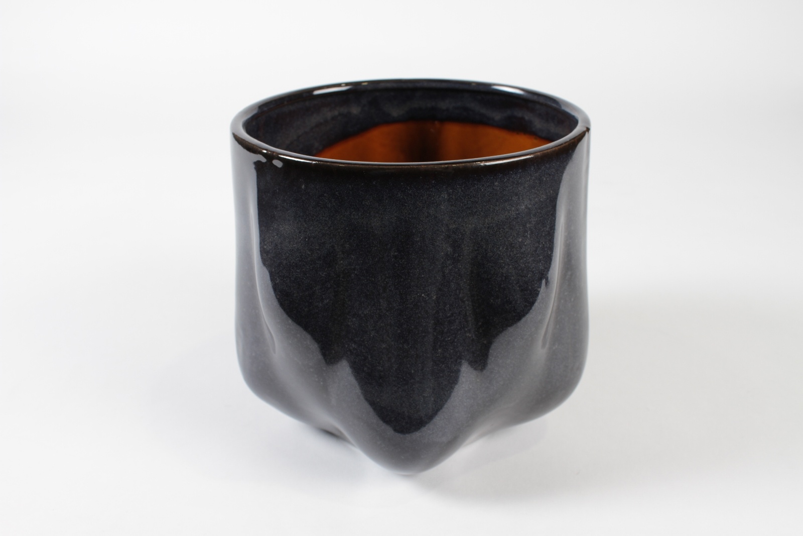 Cache-pot en céramique émaillée bleu foncé à la forme originale