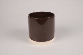 Cache-pot cylindrique en céramique marron chocolat base non émaillée blanche diamètre 15cm hauteur 15.5cm