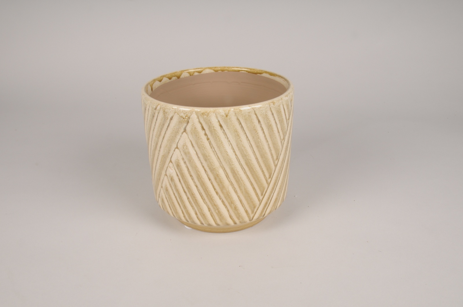 Cache-pot en céramique blanc crème avec stries en oblique diamètre 18.5cm hauteur 17cm