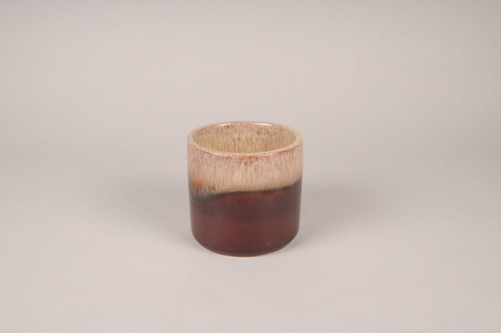 Cache-pot en céramique émaillée bicolore marron rouge et beige diamètre 13.5cm hauteur 12.5cm
