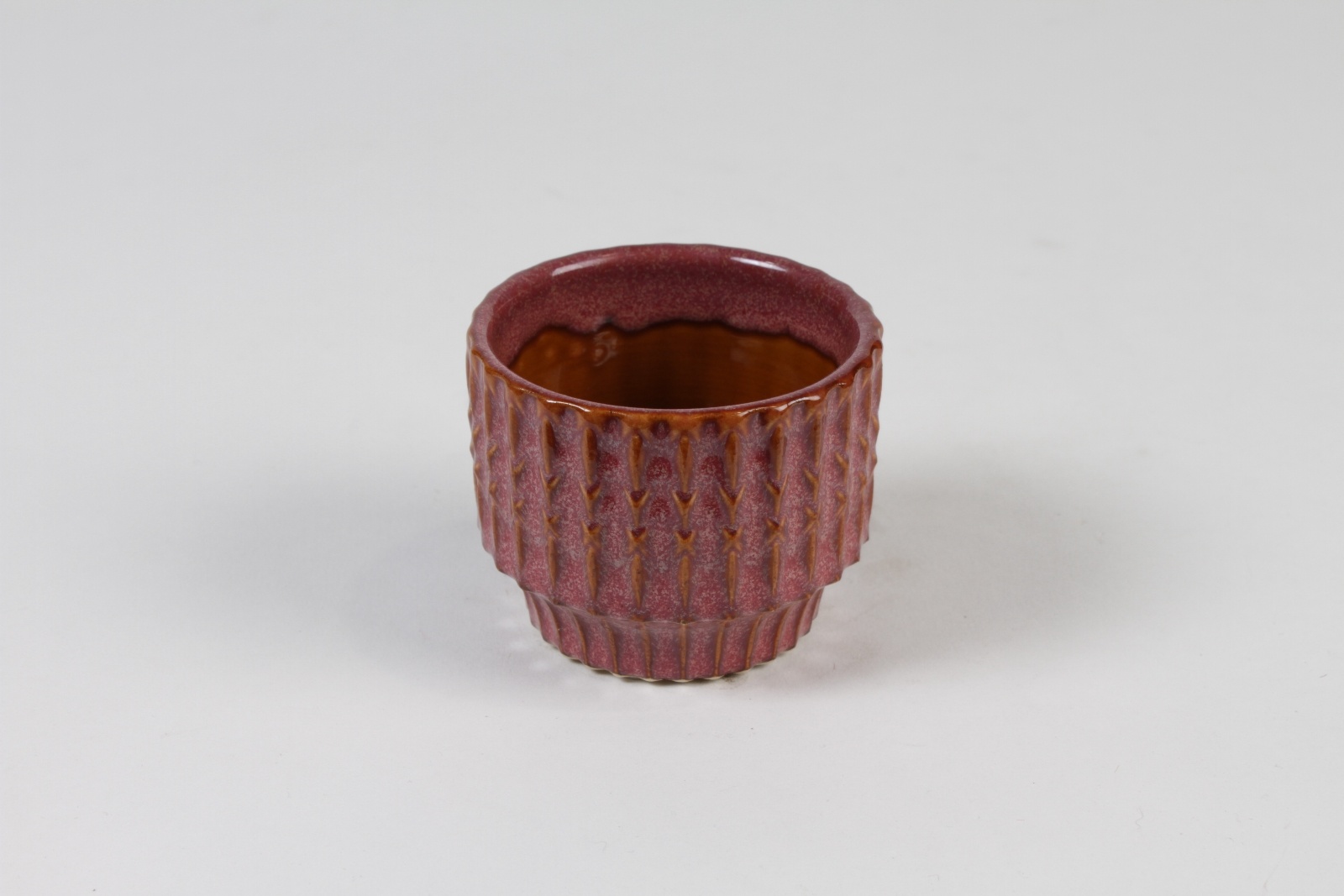 Cache-pot en céramique framboise avec motif en relief diamètre 7.5cm hauteur 6cm