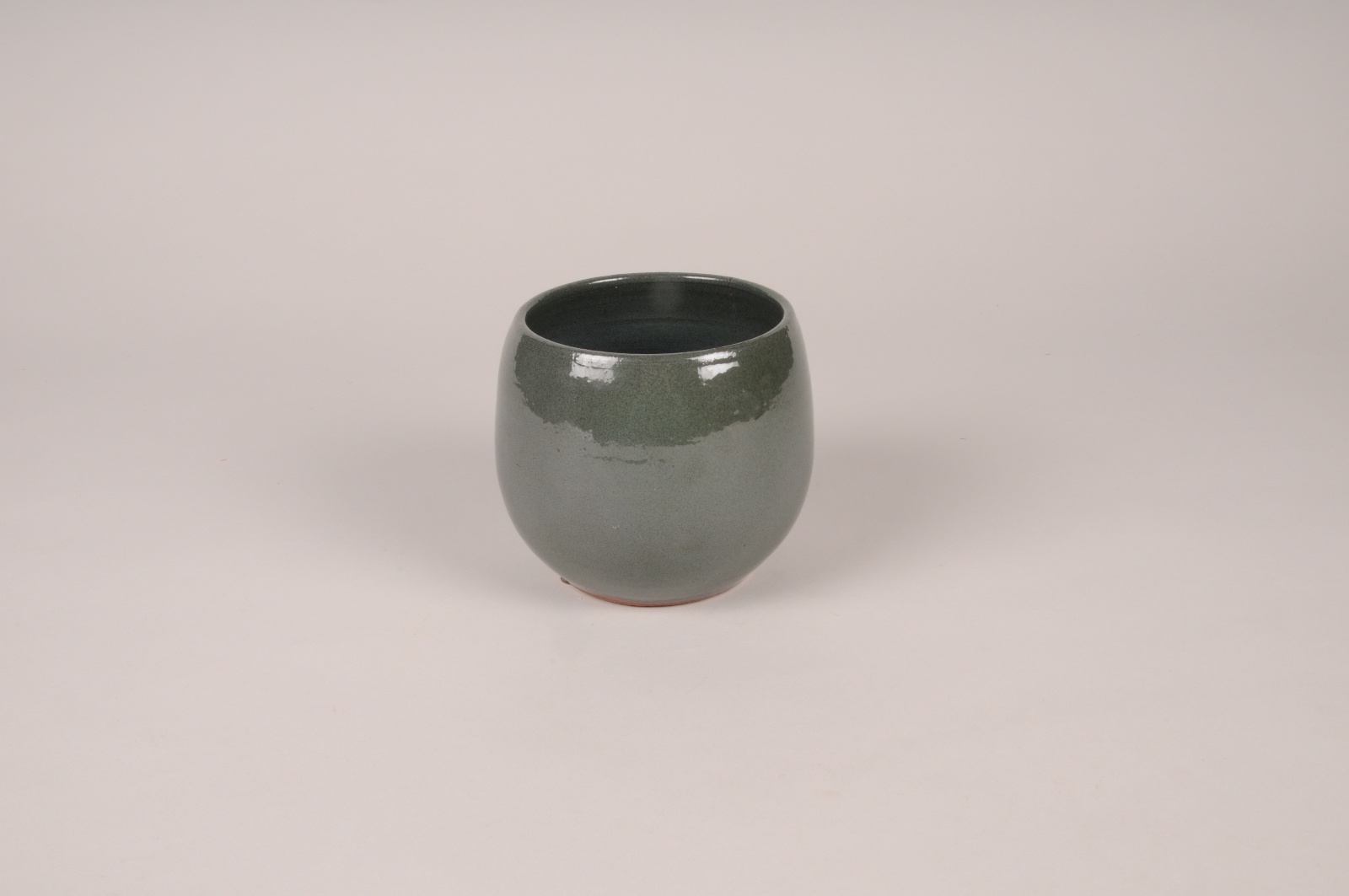 Cache-pot en céramique gris vert diamètre 14cm hauteur 11.5cm