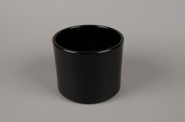 Réf. : A8-000002 Cache-pot en céramique cylindre noir diamètre 17.5cm hauteur 14cm