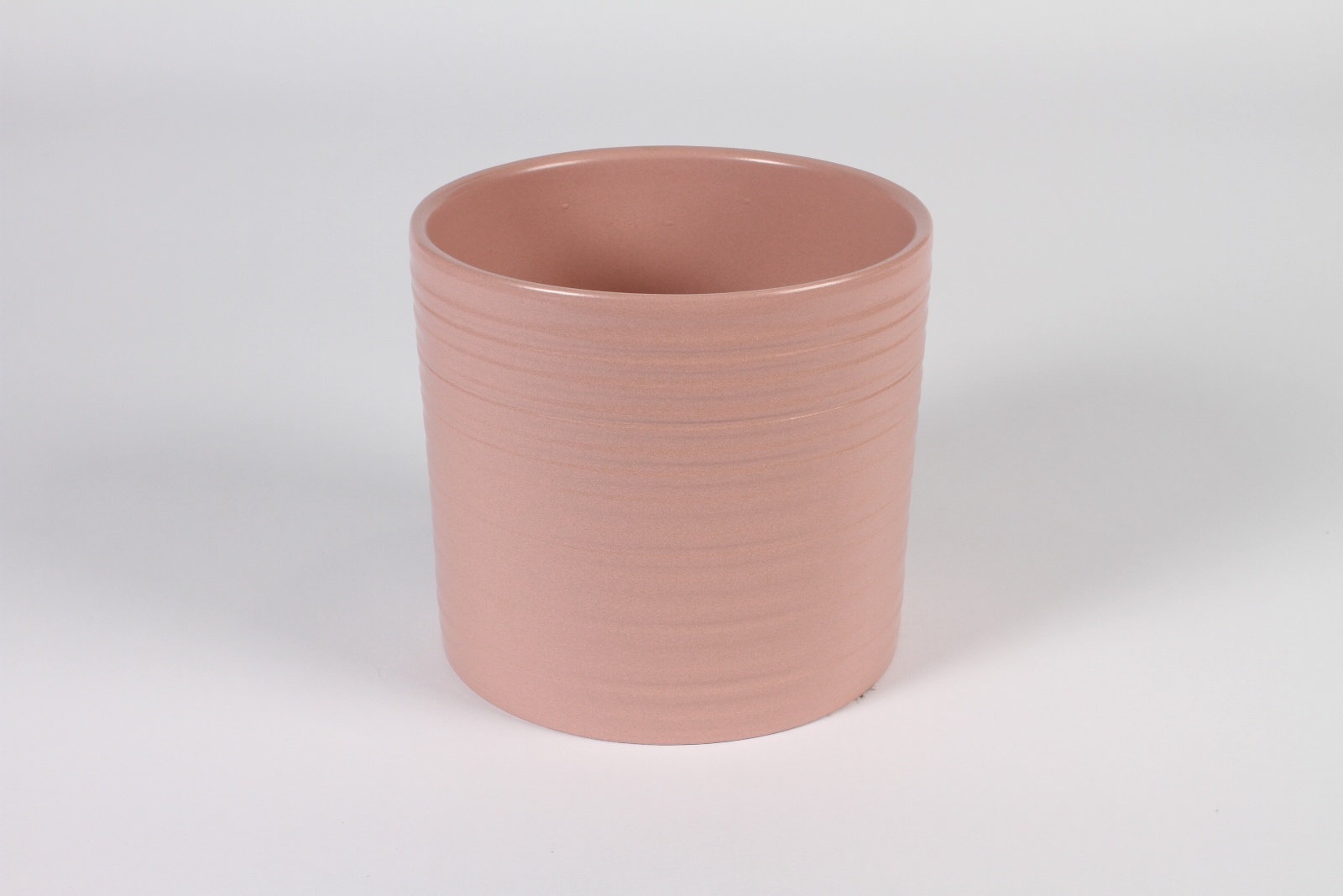 Cache-pot en céramique strié rose D17cm H15.5cm