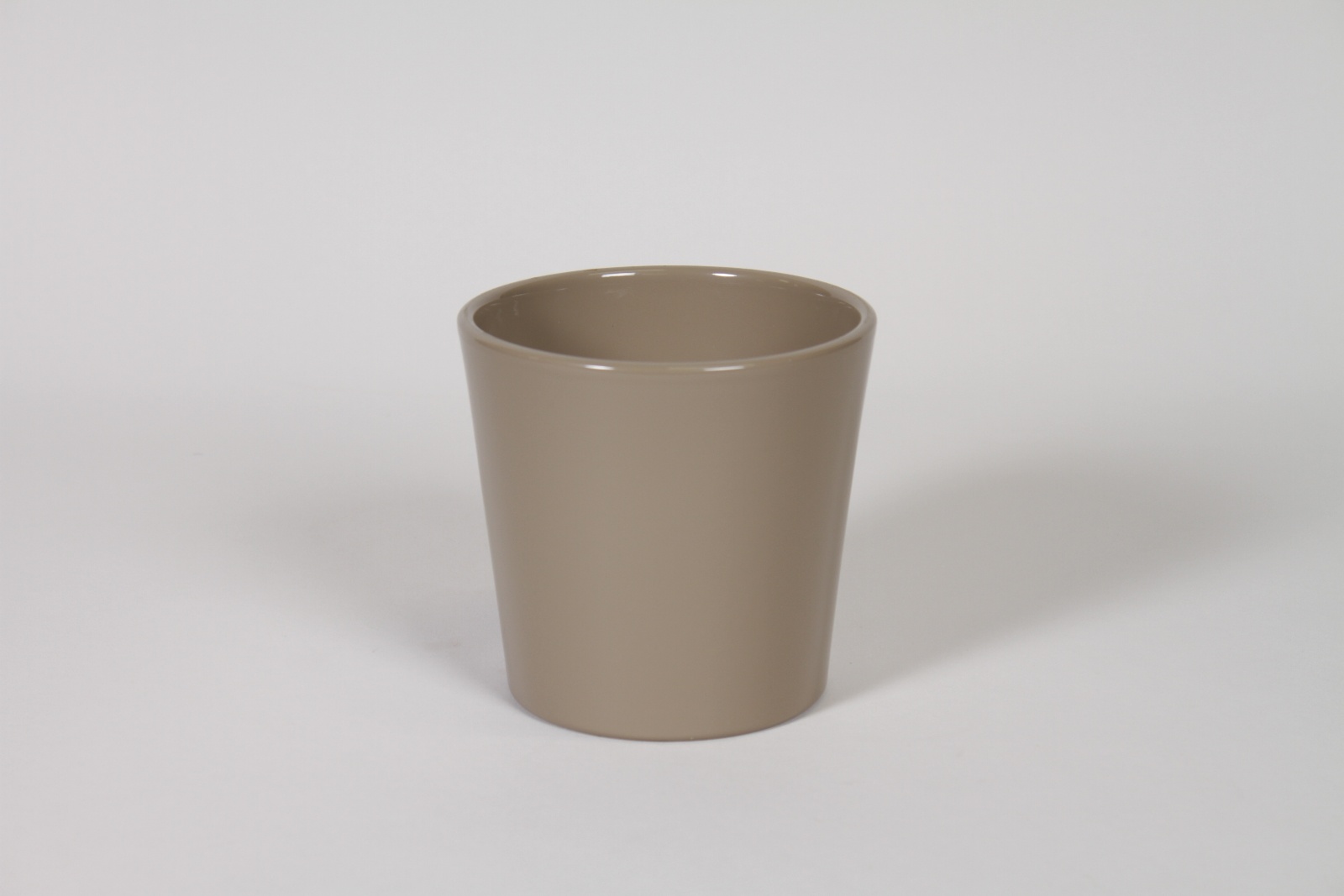 Cache-pot en céramique taupe brillant D13,5cm H12,5cm