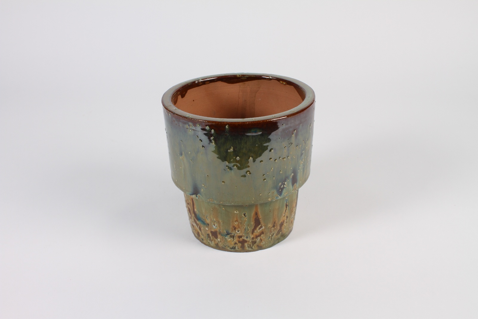 Cache-pot en céramique émaillée vert et marron antique diamètre 17cm hauteur 16.5cm
