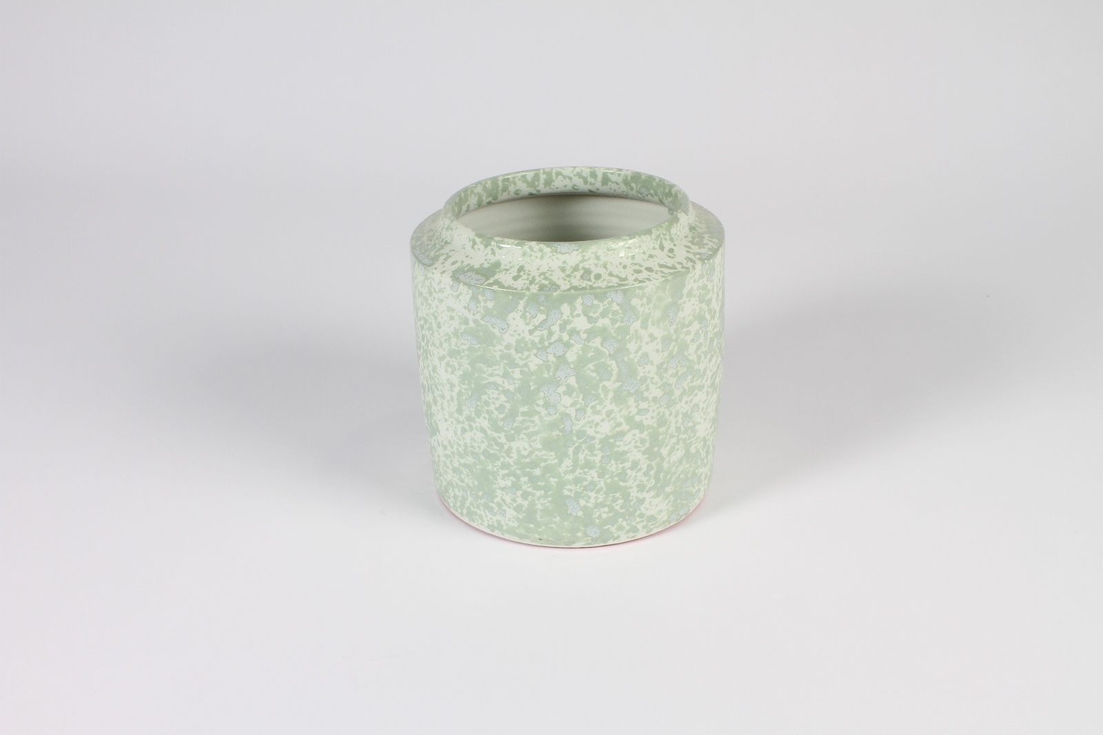 Accueil > Contenants > Poterie et céramique > Cache-pots > Cache-pot en céramique vert et banc D15cm H16cm