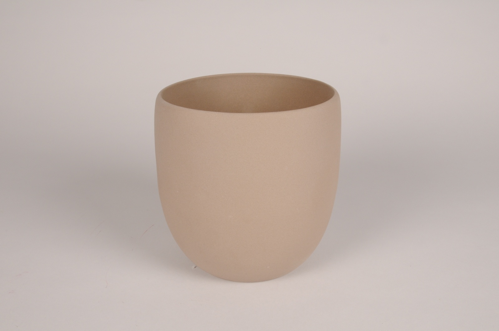 Cache-pot en terre cuite marron taupe diamètre 18cm hauteur 18cm