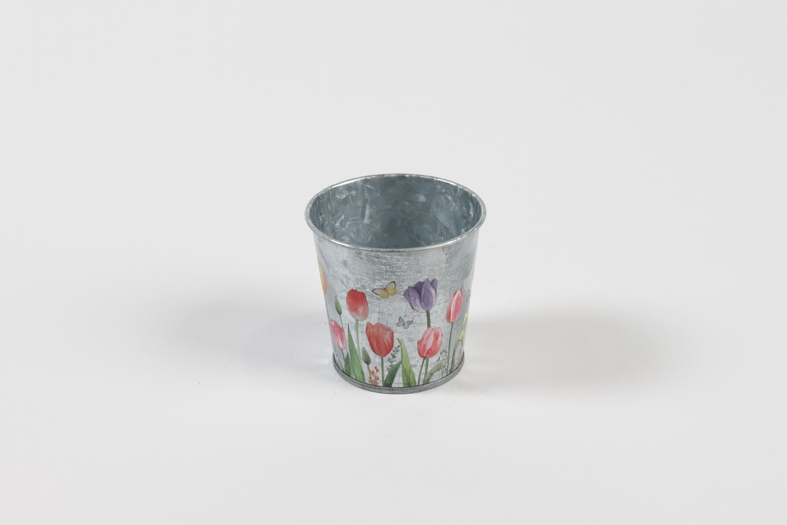 Cache-pot en zinc avec motif de tulipes diamètre 6.5cm hauteur 6cm