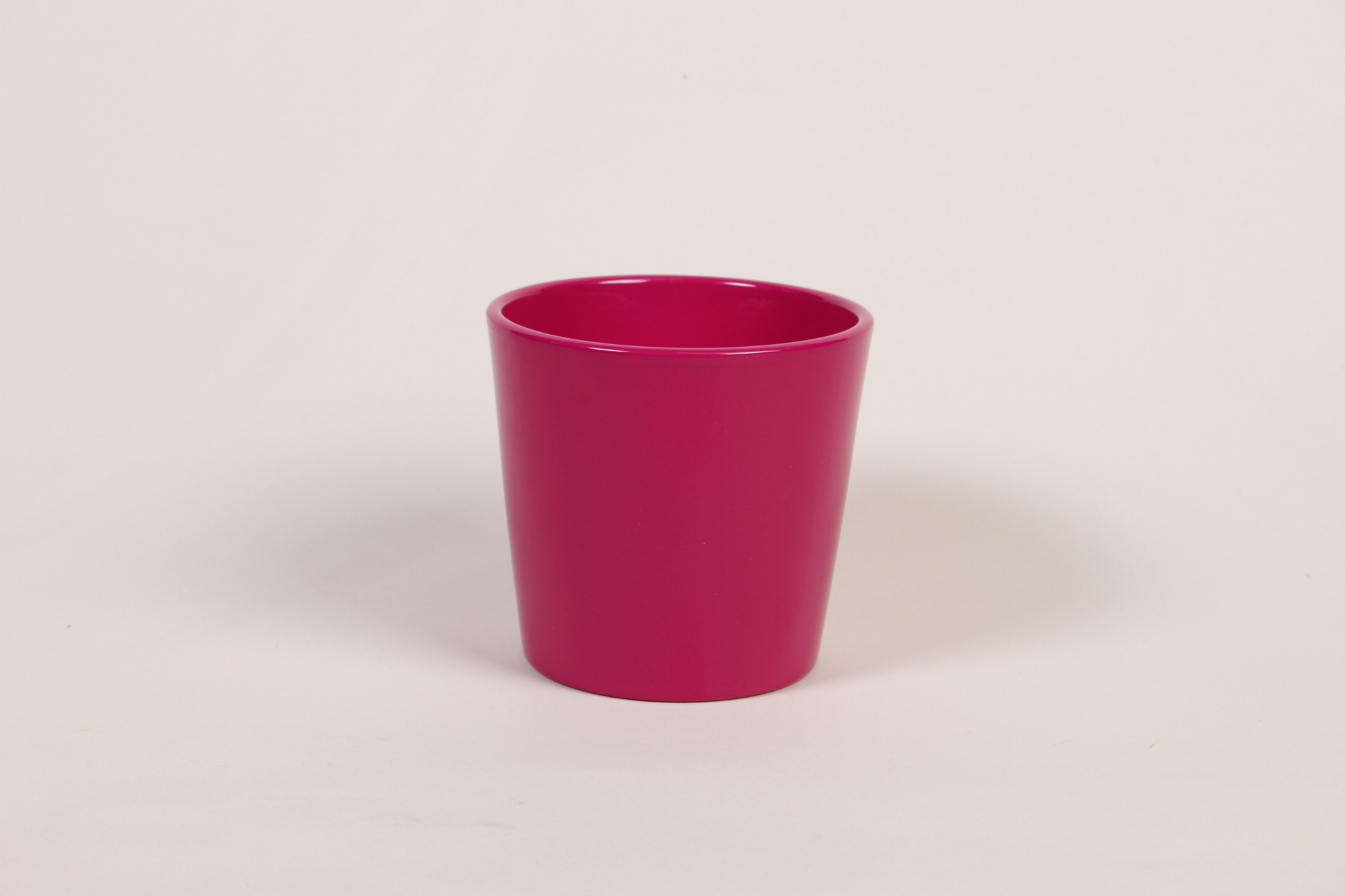 Cache-pot orchidée en céramique rose fushia brillant D13,5cm H12,5cm