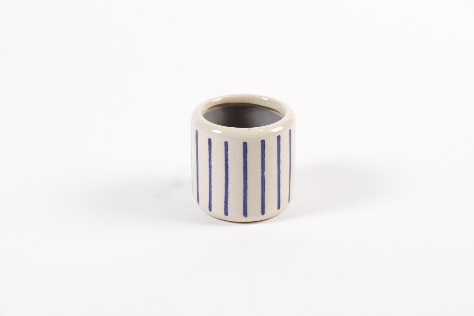 Ref. : YU-000005 Ceramic plant pot with blue lines on white bond diameter 6cm H5.5cm