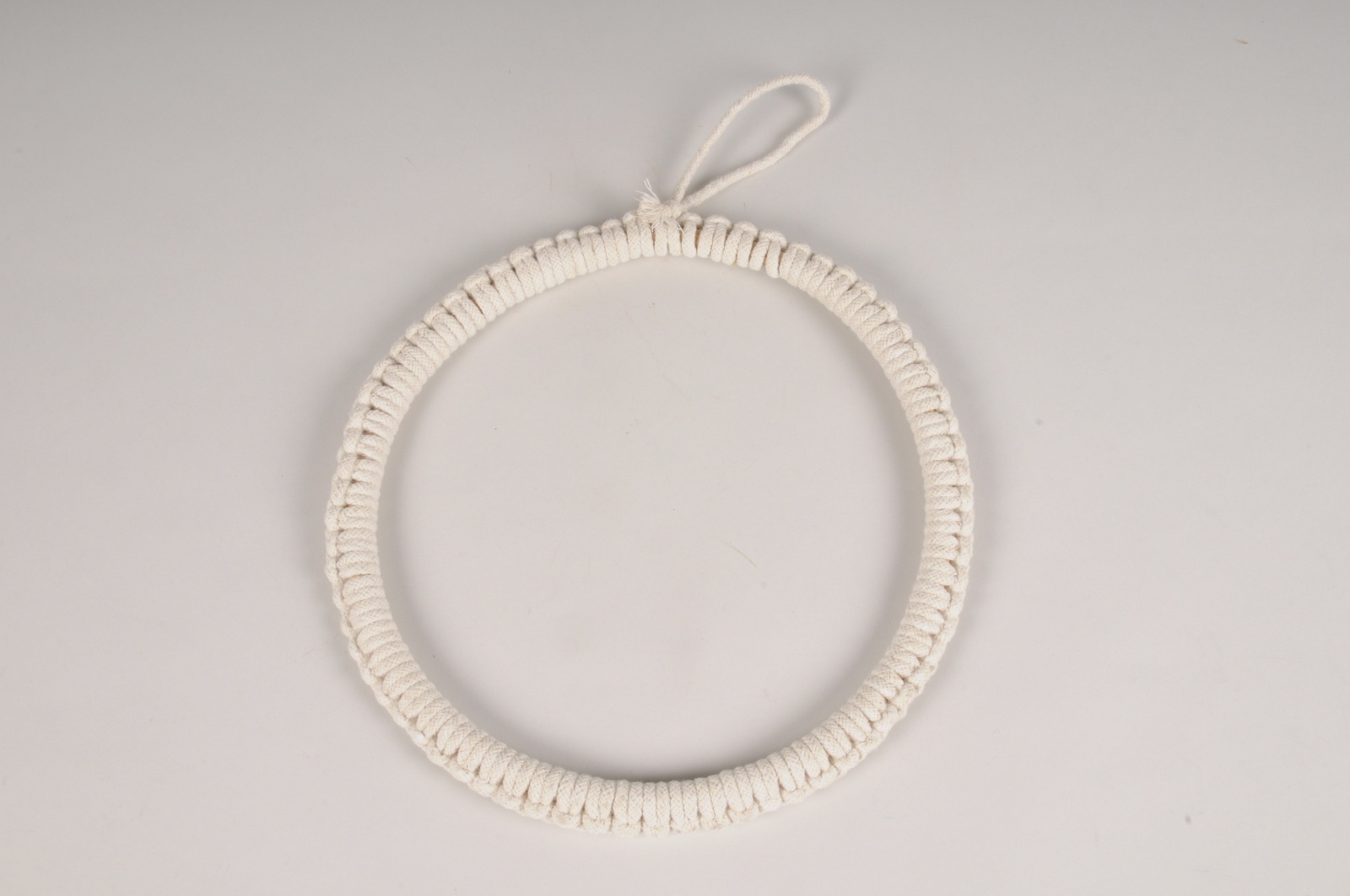 Cercle ou anneau en coton blanc crème à suspendre utilisé pour la création d'une couronne de fleurs diamètre 28cm