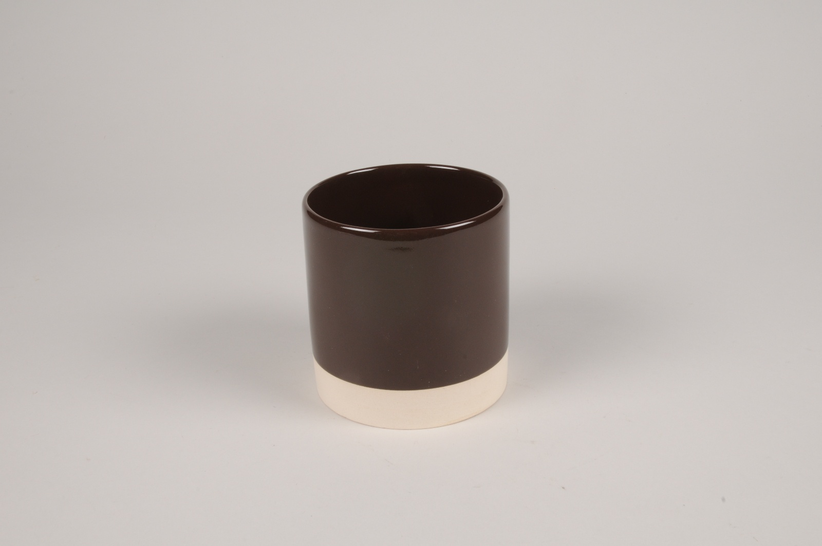 Chocolate cylindrical ceramic planter with white unglazed base diameter 11cm height 11.5cmInside diameter 10.5cm