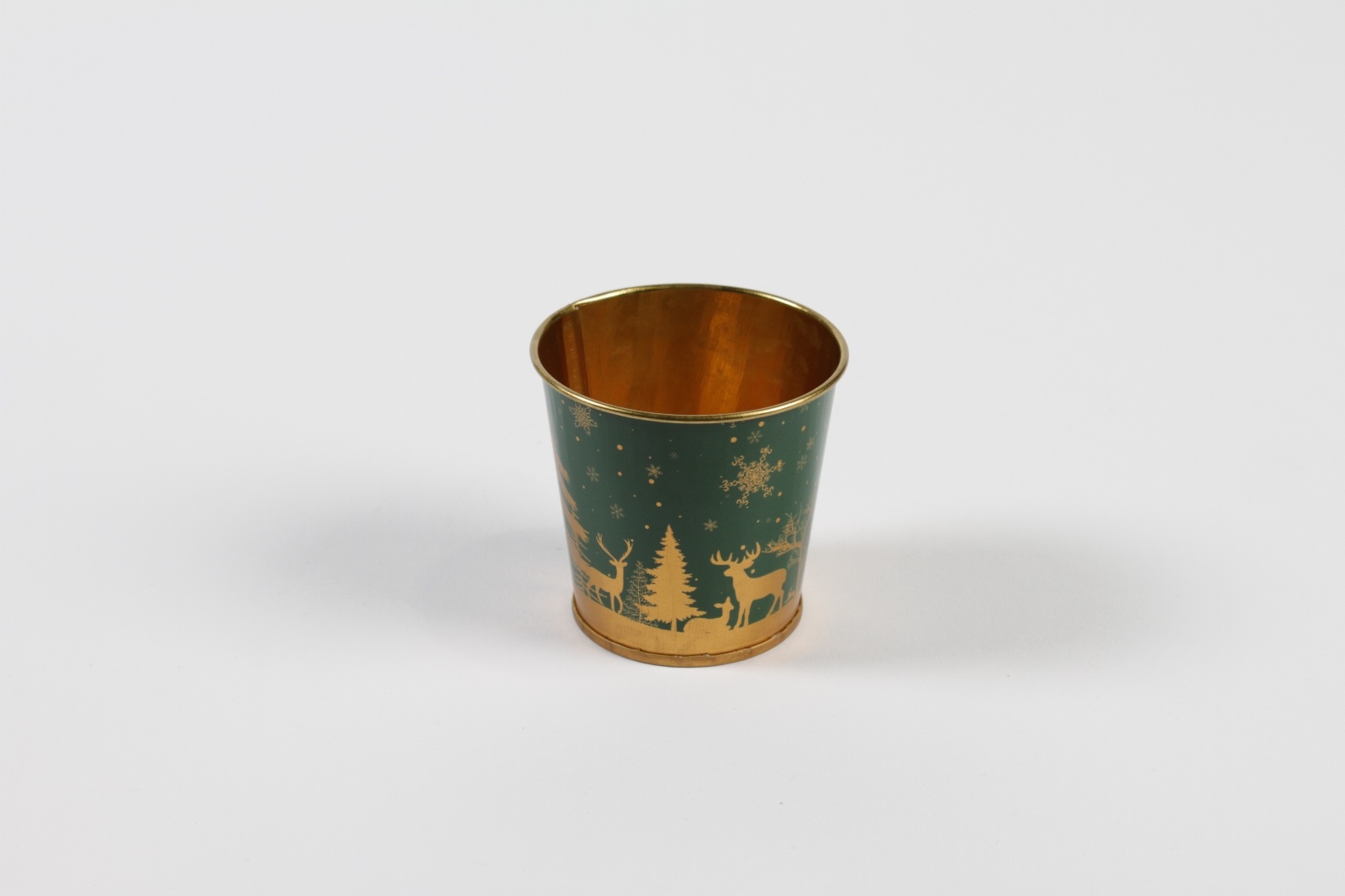 Ref. : MH-000014 Green zinc plant pot with gold Christmas pattern diameter 6.5cm height 6cm