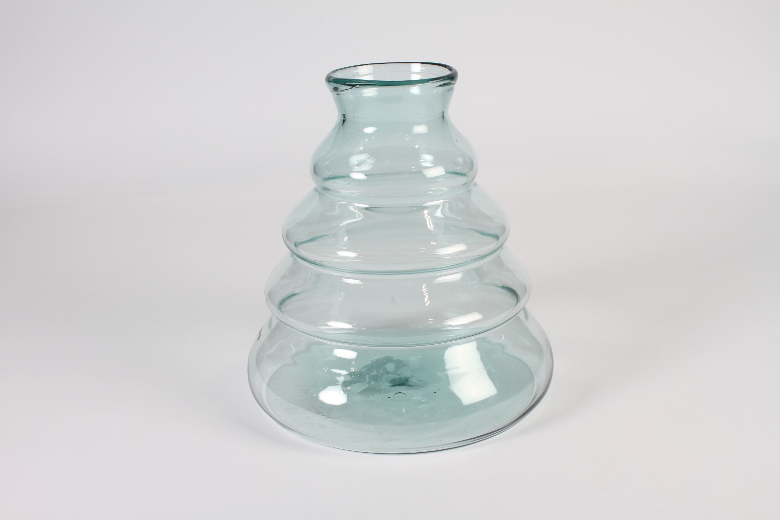 Clear thick recycled glass vase with pine tree design diameter 24cm height 27cmOpening diameter 7.5cm