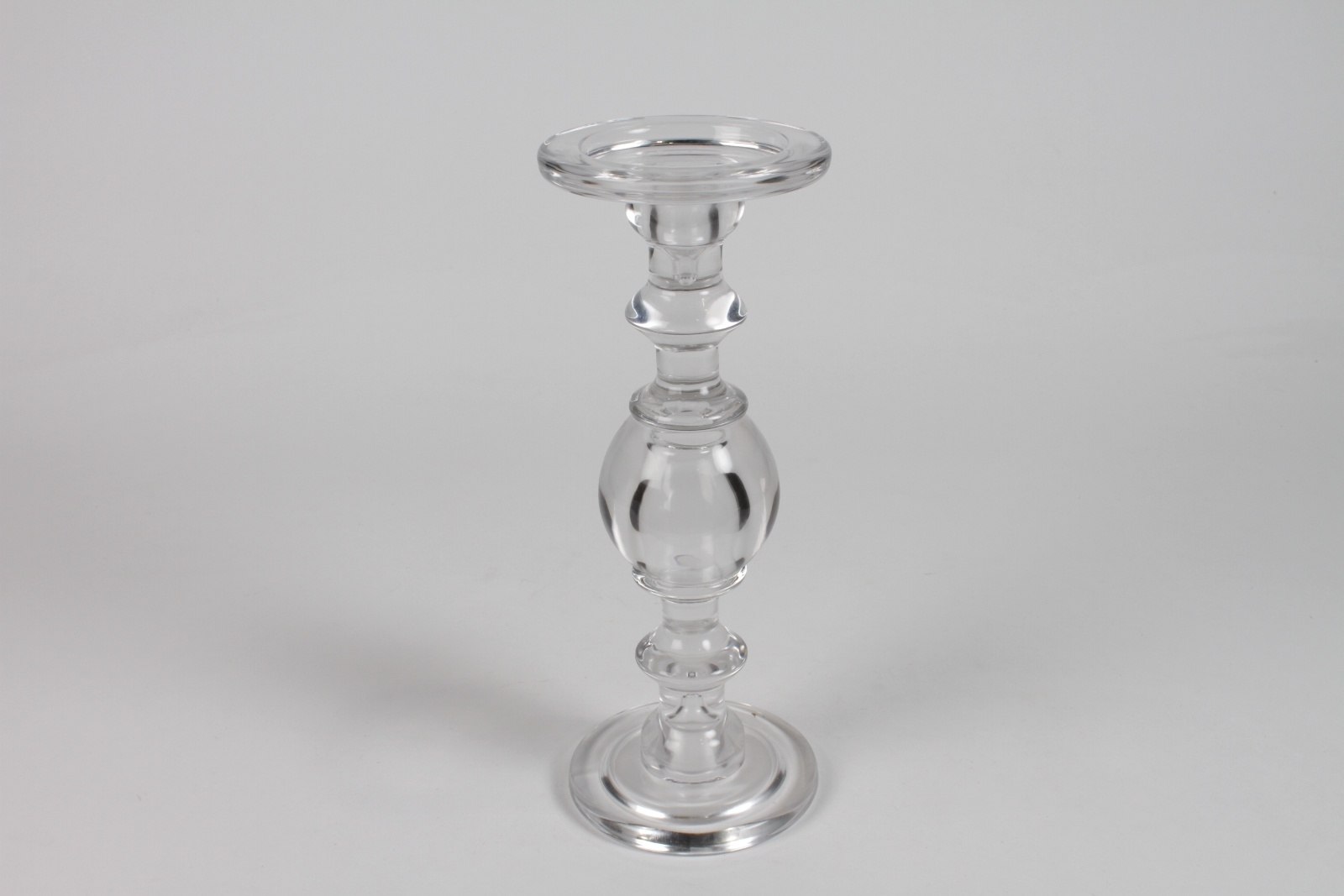 Clear glass stemmed candlestick diameter 11.3cm height 29cmOpening diameter 2.5cm