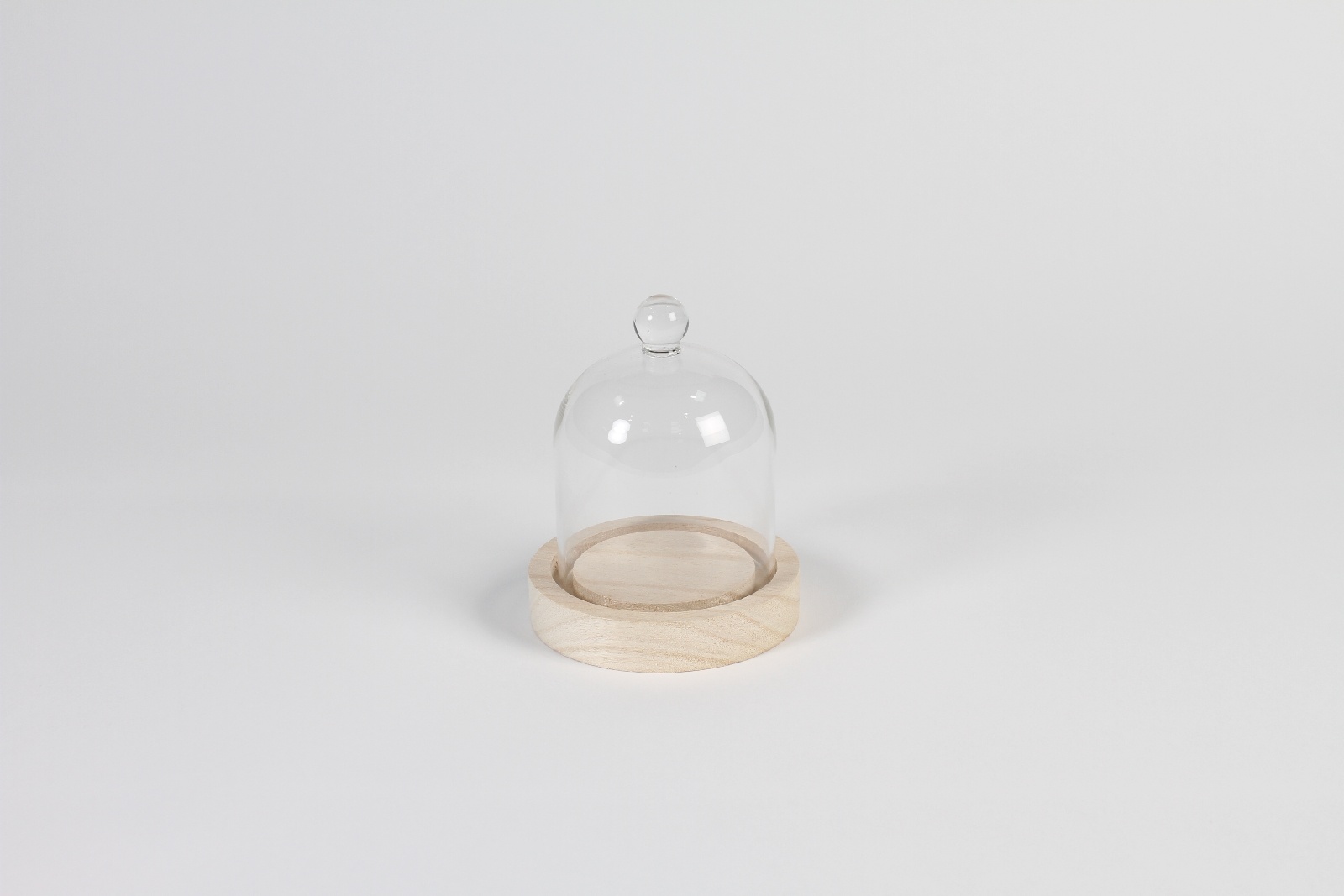 Cloche en verre avec plateau bois D10cm H12.5cm