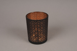 Ref. : P5-000009 Copper and black diamonds motif glass light holder diameter 10cm height 12.5cm