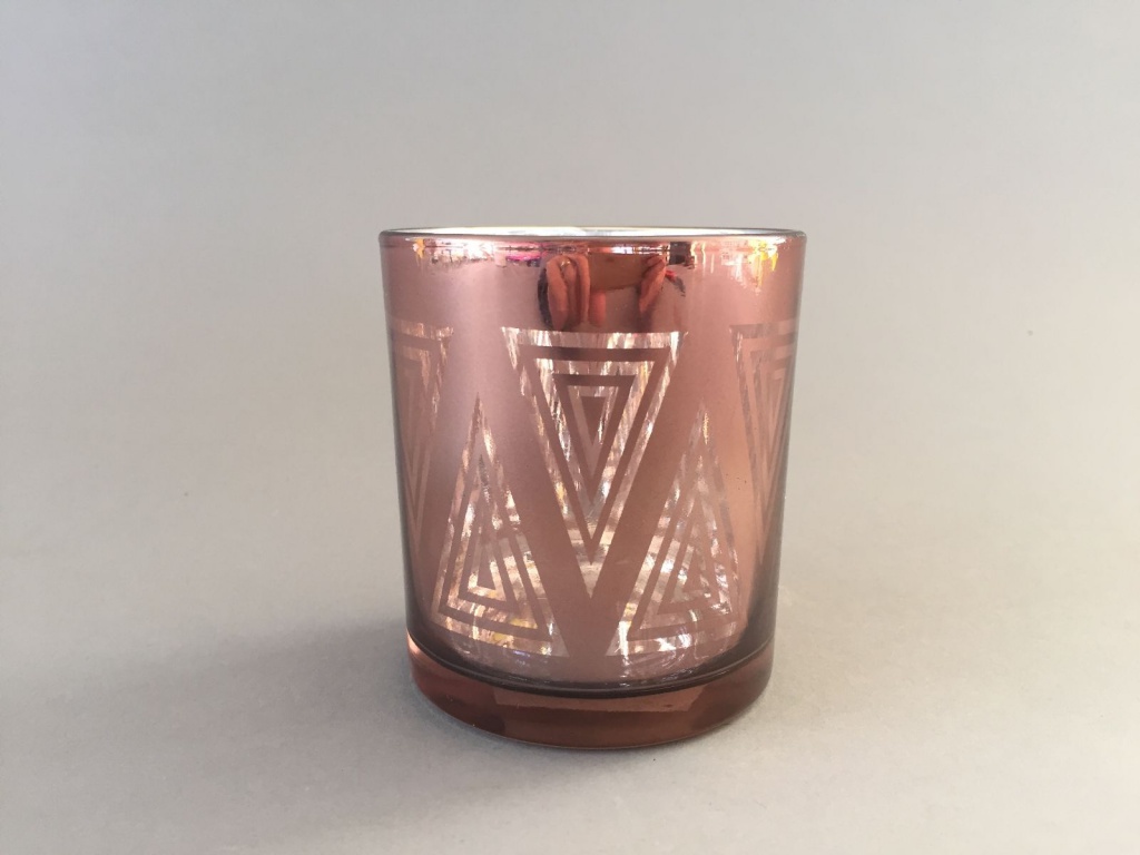 Ref. : G1-000001 Copper glass candle jar with motif triangle diameter 8cm height 9cm