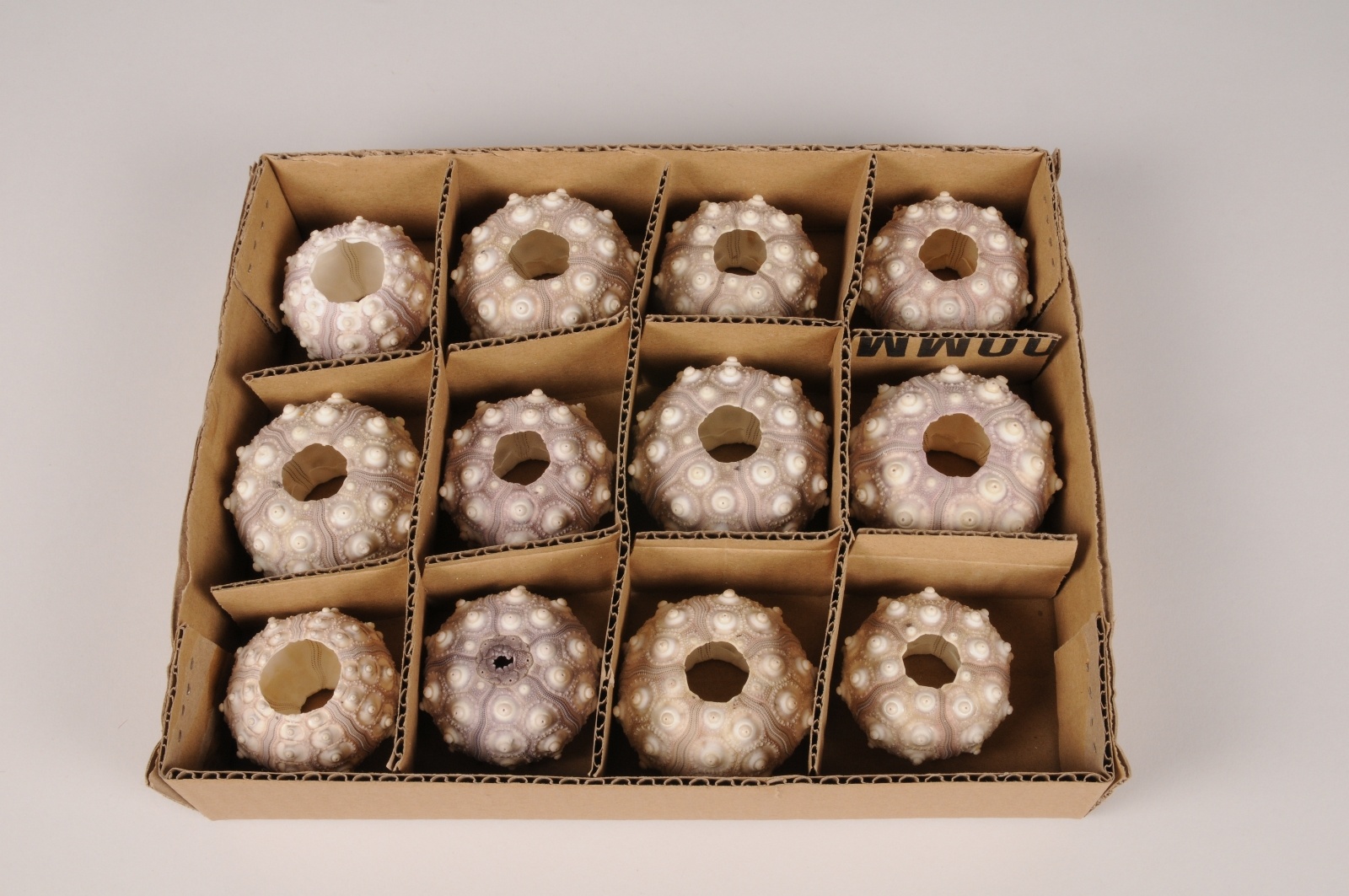 Boîte de 12 coquilles d'oursins violets