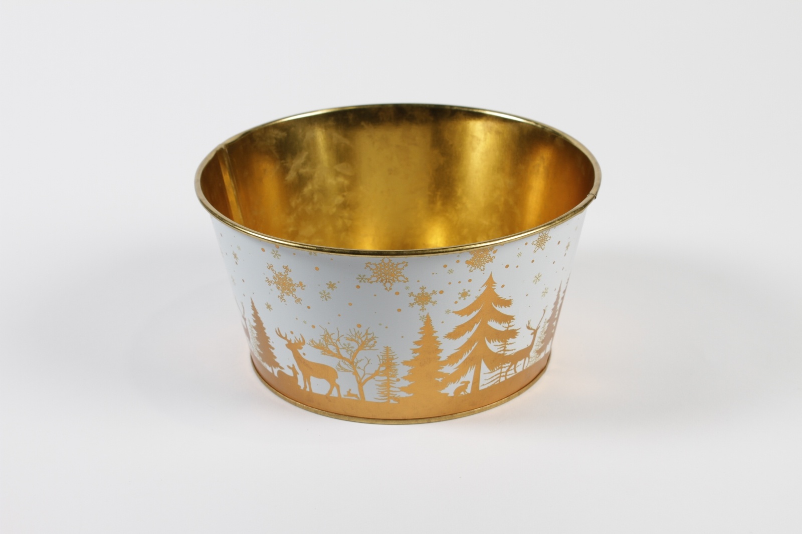 Coupe en zinc blanc avec motif de Noël or diamètre 19.5cm hauteur 10cm