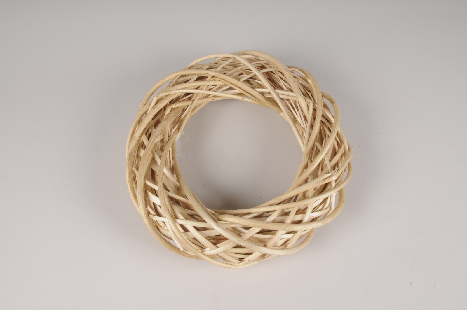 Couronne en osier tressé clair à suspendre diamètre 30cm épaisseur 6.5cm