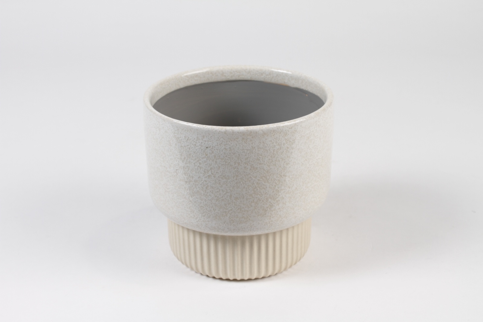 Cream and white ceramic planter with cream striated base diameter 13.8cm height 13cmInside diameter 12.5cmBase diameter 10.5cm
