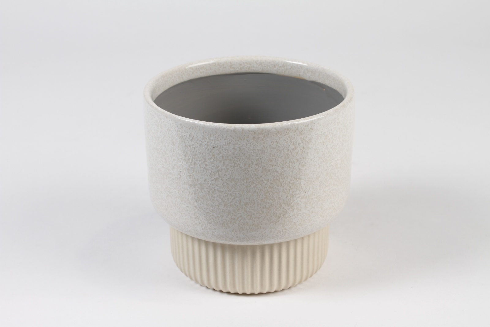Cream and white ceramic planter with cream striated base diameter 17.8cm height 16cmInside diameter 16cmBase diameter 13.5cm
