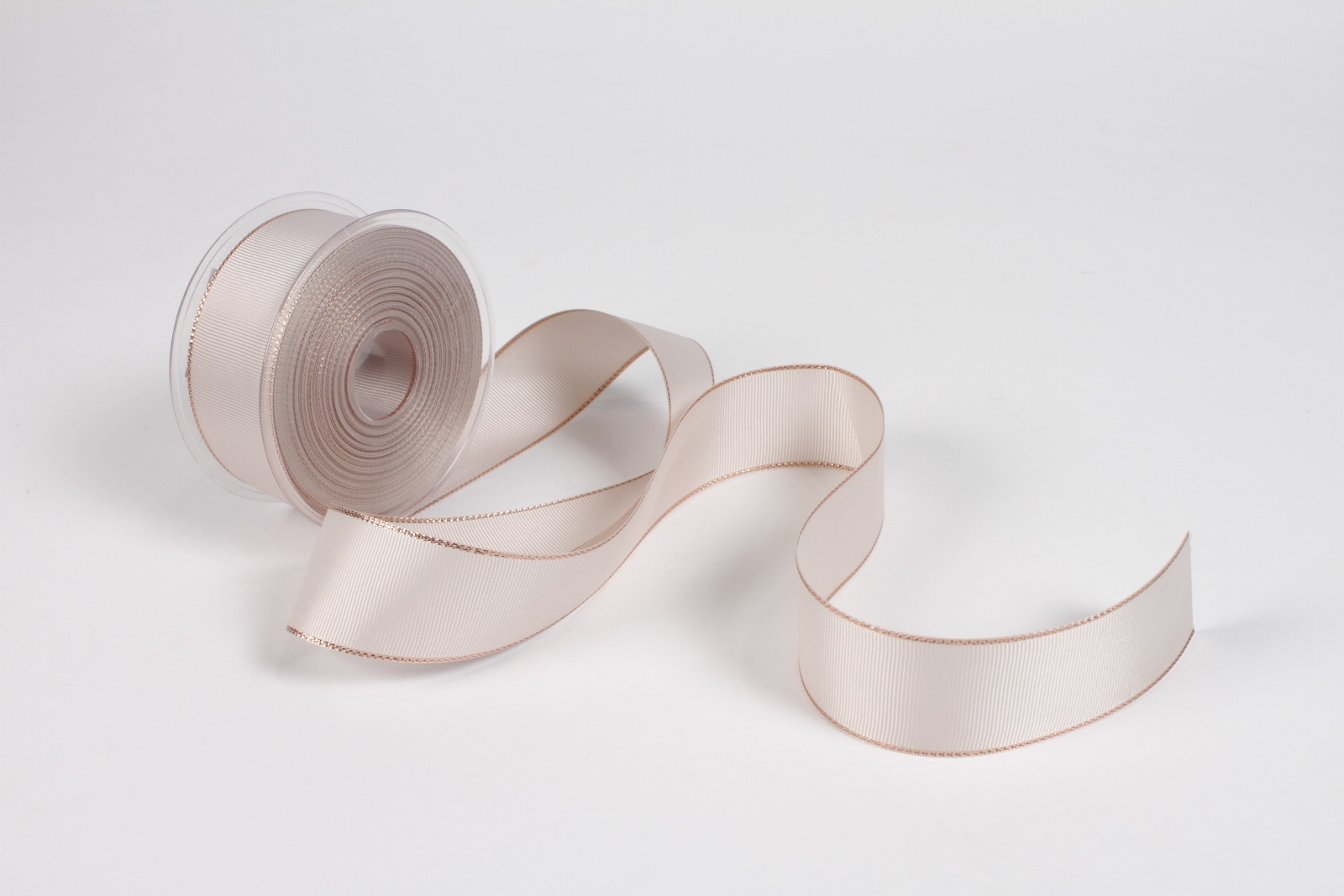 Cream fabric ribbon with gold edging width 40mm length 20m