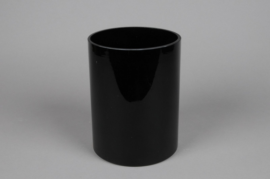 Ref. : PS-000015 Cylindric glass vase black diameter 15cm height 20cm