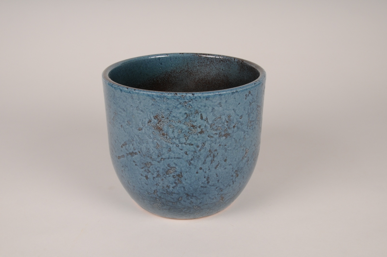 Dark blue glazed ceramic vase diameter 19cm height 16.5cm Opening diameter 17cmBase diameter 14cm