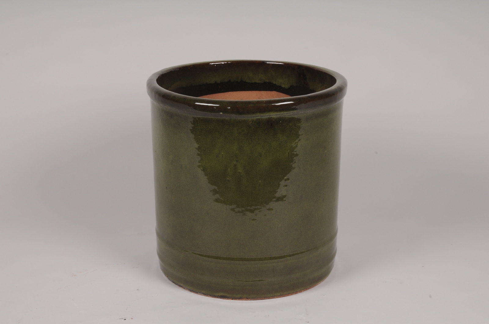 Dark green glazed ceramic drilled pot diameter 32cm height 31cmInside diameter 28cm