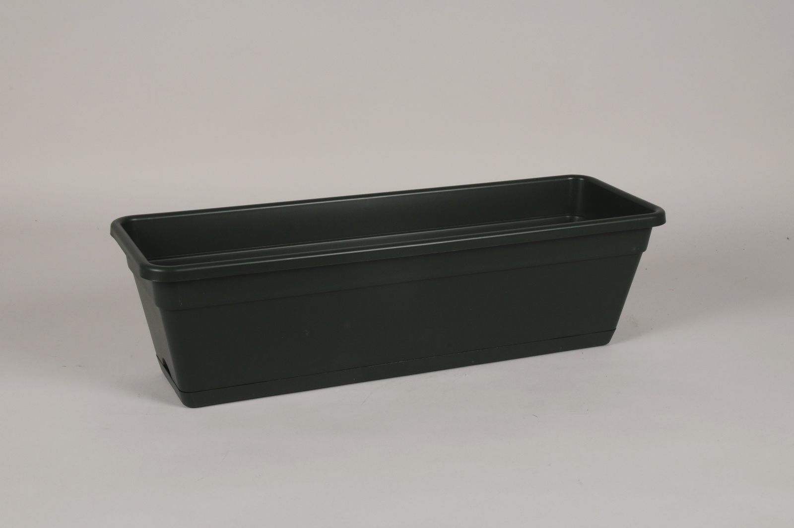 Dark green plastic planter with saucerLength: 58.5cmWidth: 19cmHeight: 17cm