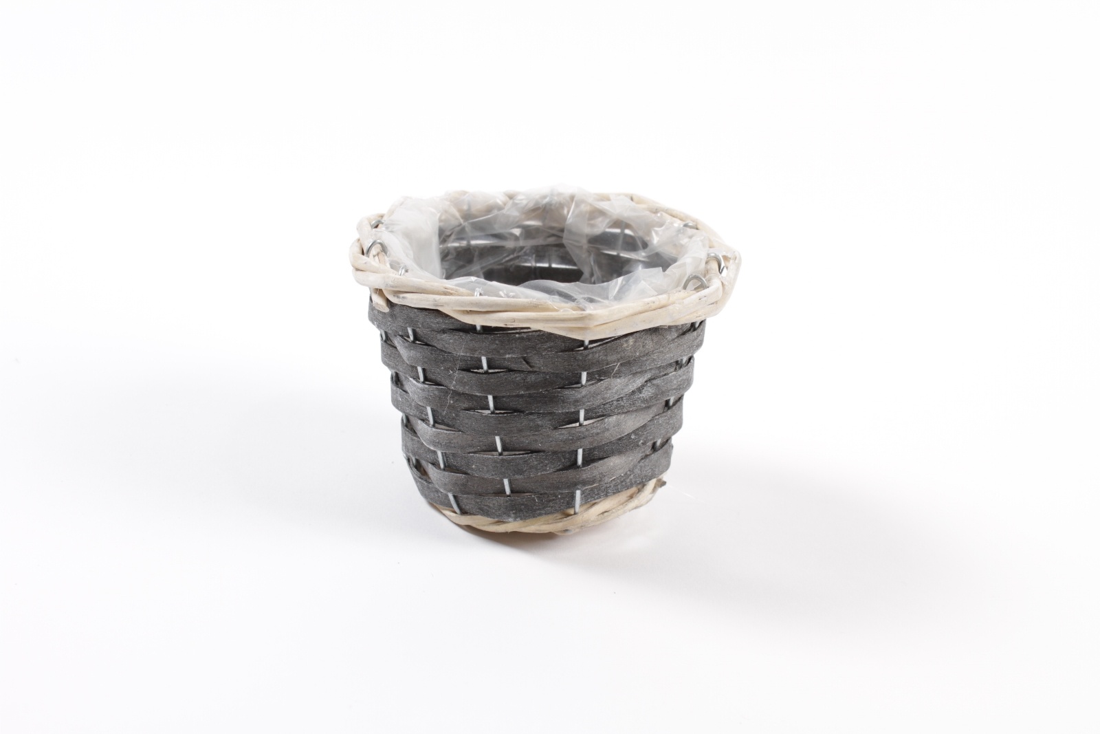 Dark grey wicker planter diameter 13cm height 9cmInside diameter 10cmPlastic film inside