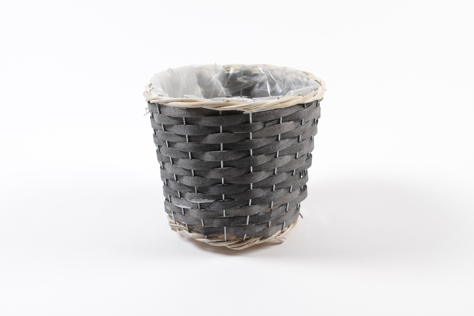 Dark grey wicker planter diameter 15cm height 13cmInside diameter 12cmPlastic film inside