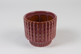 Dark pink ceramic planter with embossed pattern diameter 12.5cm height 11cmInside diameter 10.5cmBase diameter 9cm