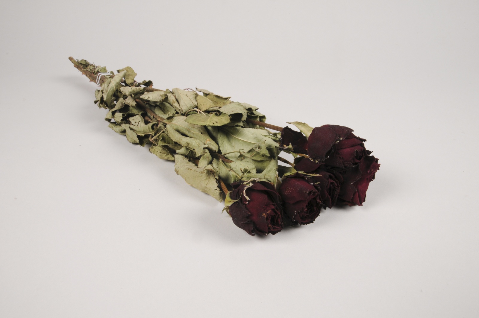 Bunch of dark red dried roses height 46cmFlower diameter about 2.5cm