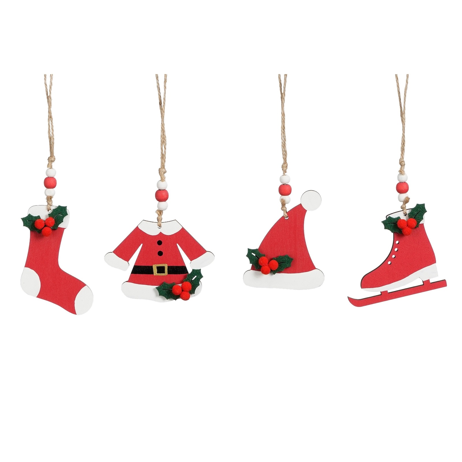Décoration de noël en bois rouge à suspendre assorti longueur 8.5cm hauteur 8.5cm