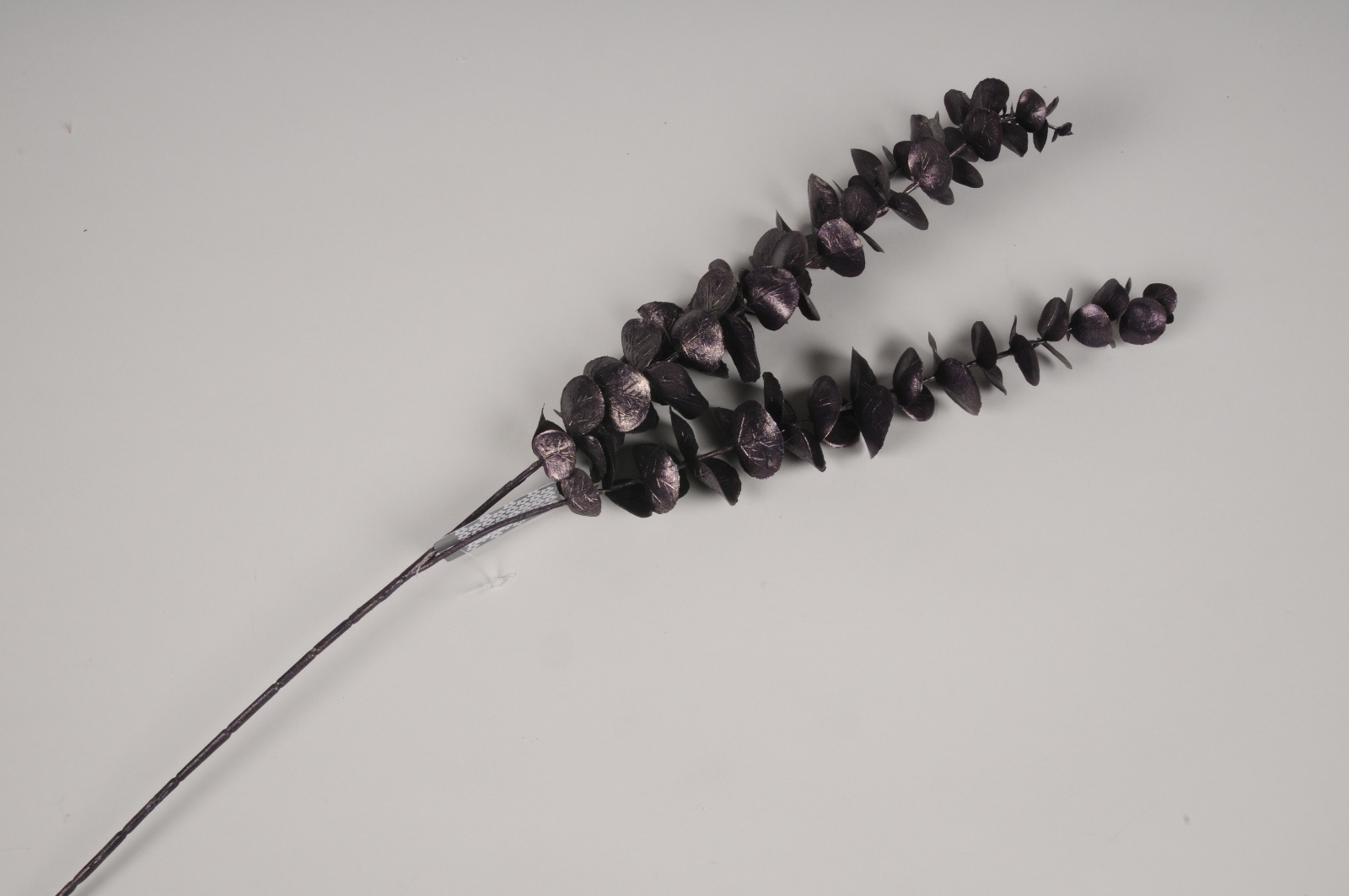 Branche d'eucalyptus artificiel violet avec reflets brillants hauteur 60cm
