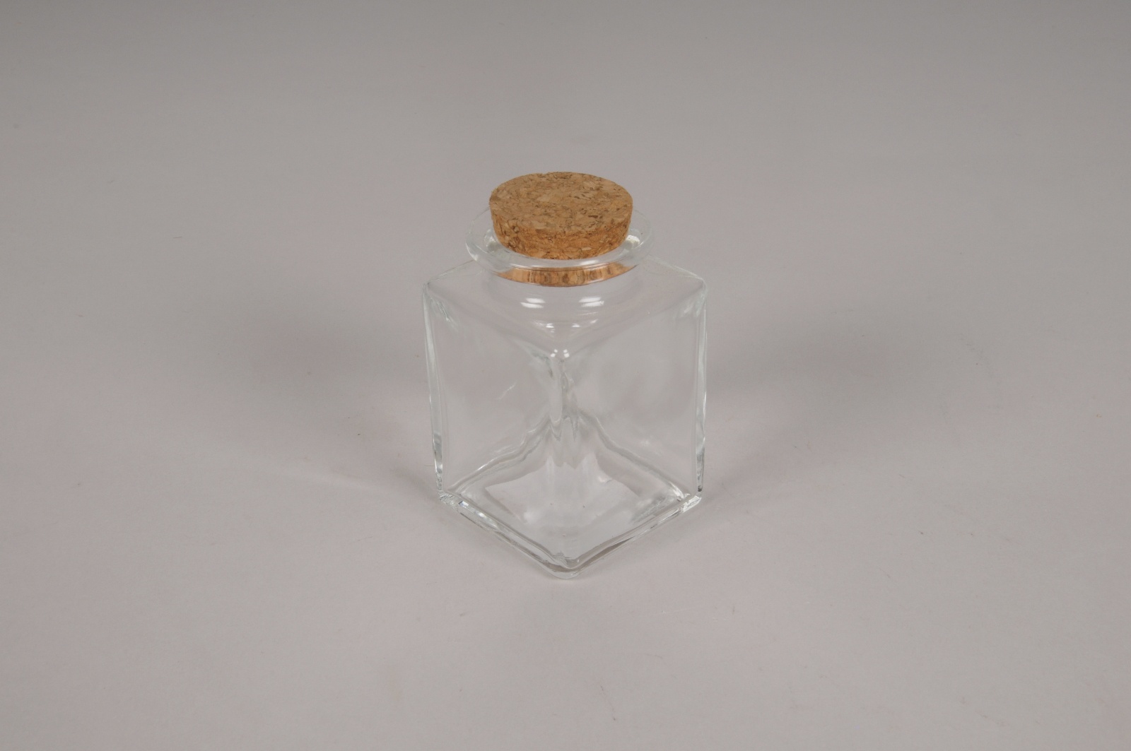 Fiole ou flacon en verre transparent rectangulaire avec bouchon en liège 4.5x4.5cm hauteur 8cm