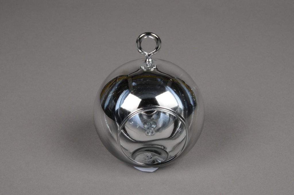 Glass ball hanging silver with an opening diameter 8cm height 9cm