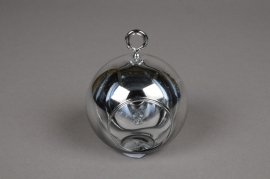 Glass ball hanging silver with an opening D8cm H9cm