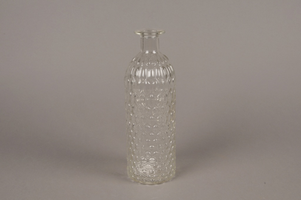 Ref. : R4-000005 Glass bottle vase with honeycomb pattern diameter 8cm height 25cm