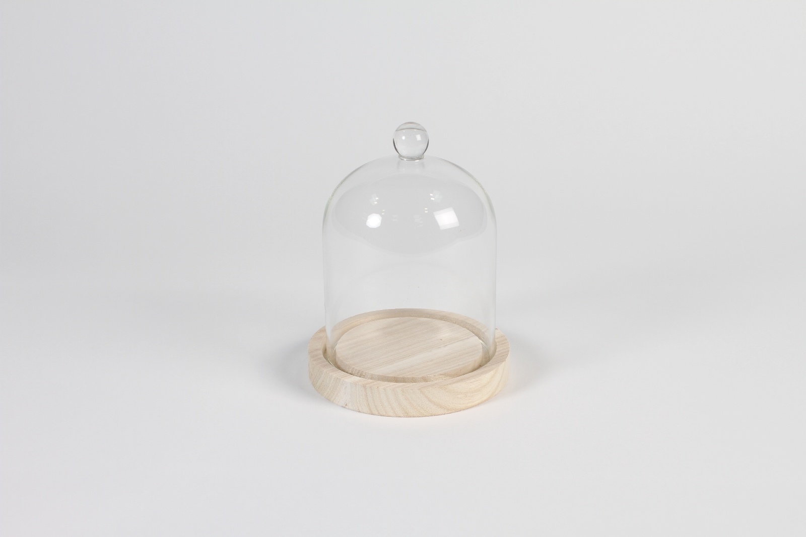 Glass dome diameter 10cm height 12cm Wooden tray diameter 12cm height 1.8cm