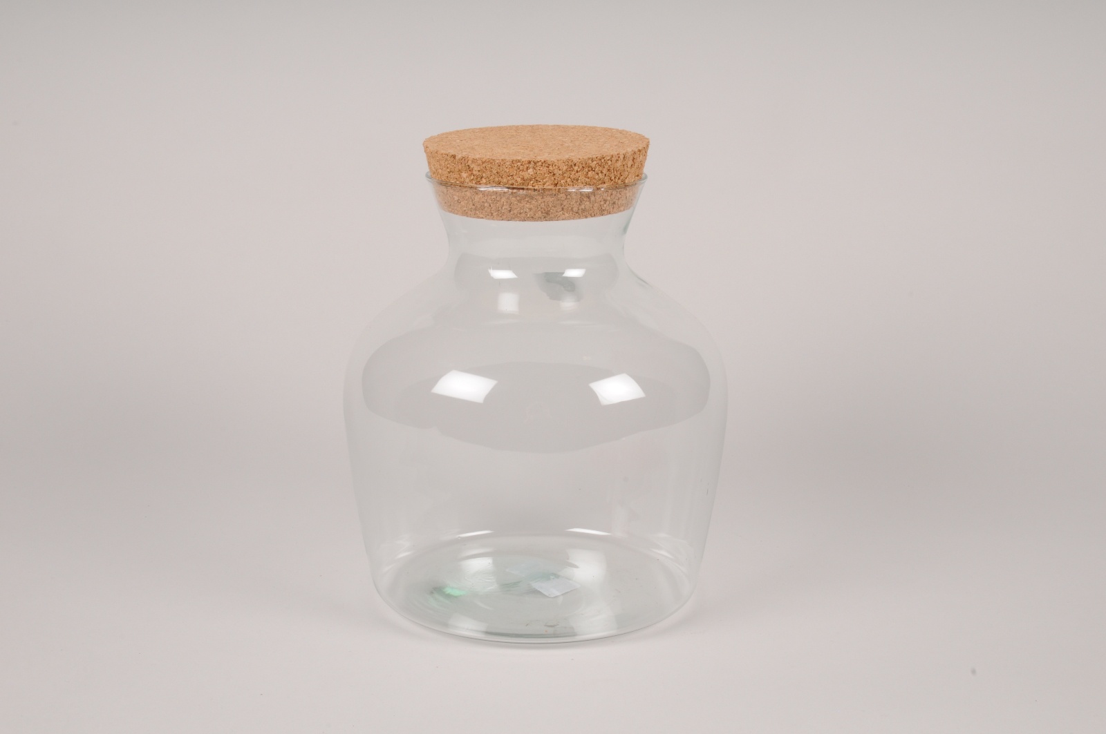 Clear glass terrarium with cork diameter 20cm height 23.5cmBase diameter 16.5cmOpening diameter 8.5cmCork diameter 11cm height 3cm100% recycled glass